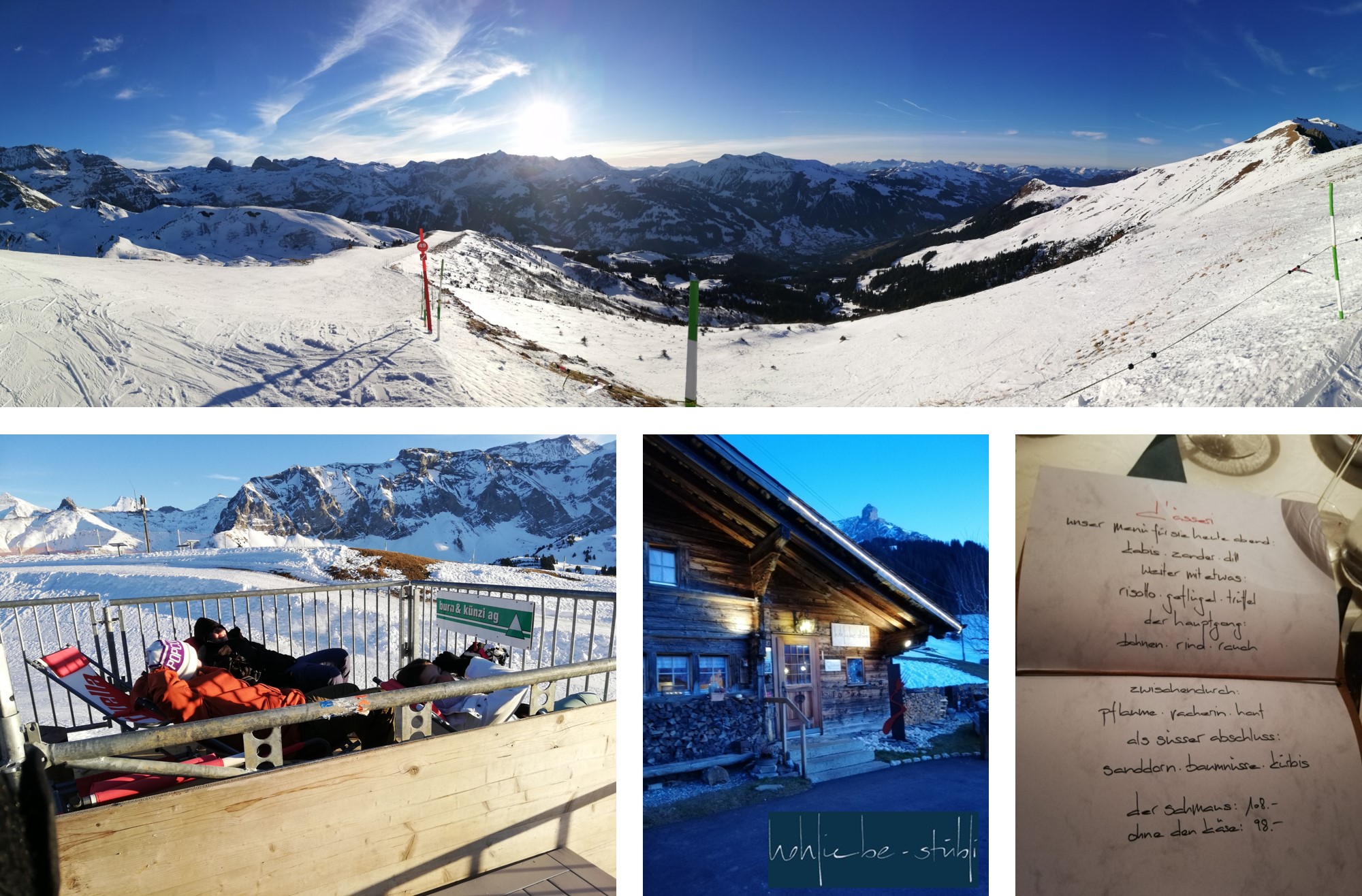 Für unseren Skitag Ende Januar hatten wir wunderbares Wetter. Der Sonnenschein machte den etwas dürftigen Schnee wieder wett. Im Hohliebistübli in Adelboden liessen wir den Tag ausklingen. Das Essen, jeder Bissen eine Entdeckung. Wir wurden richtig umsorgt. Das Hohliebistübli ist ein Ort zum geniessen und wohlfühlen!