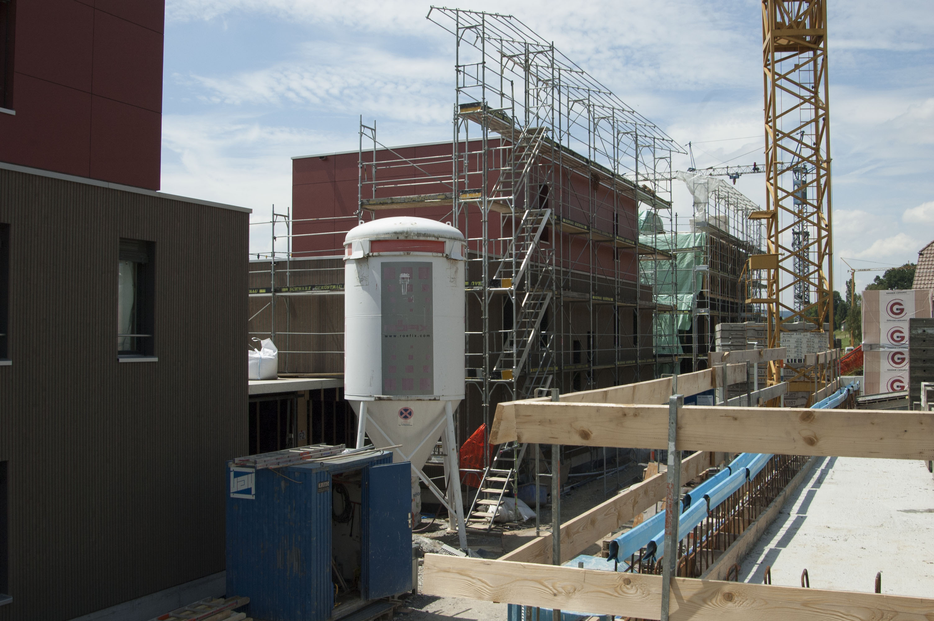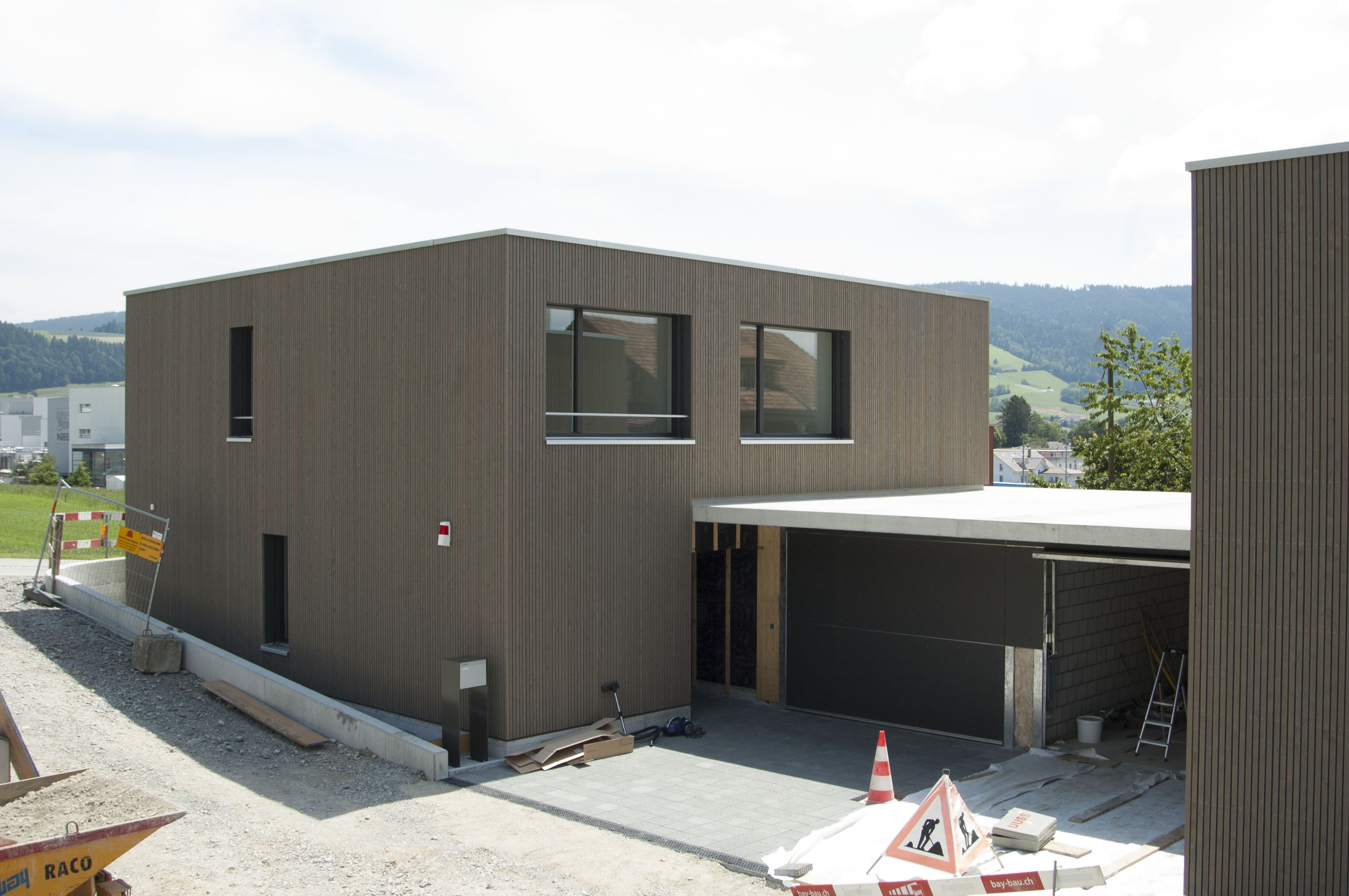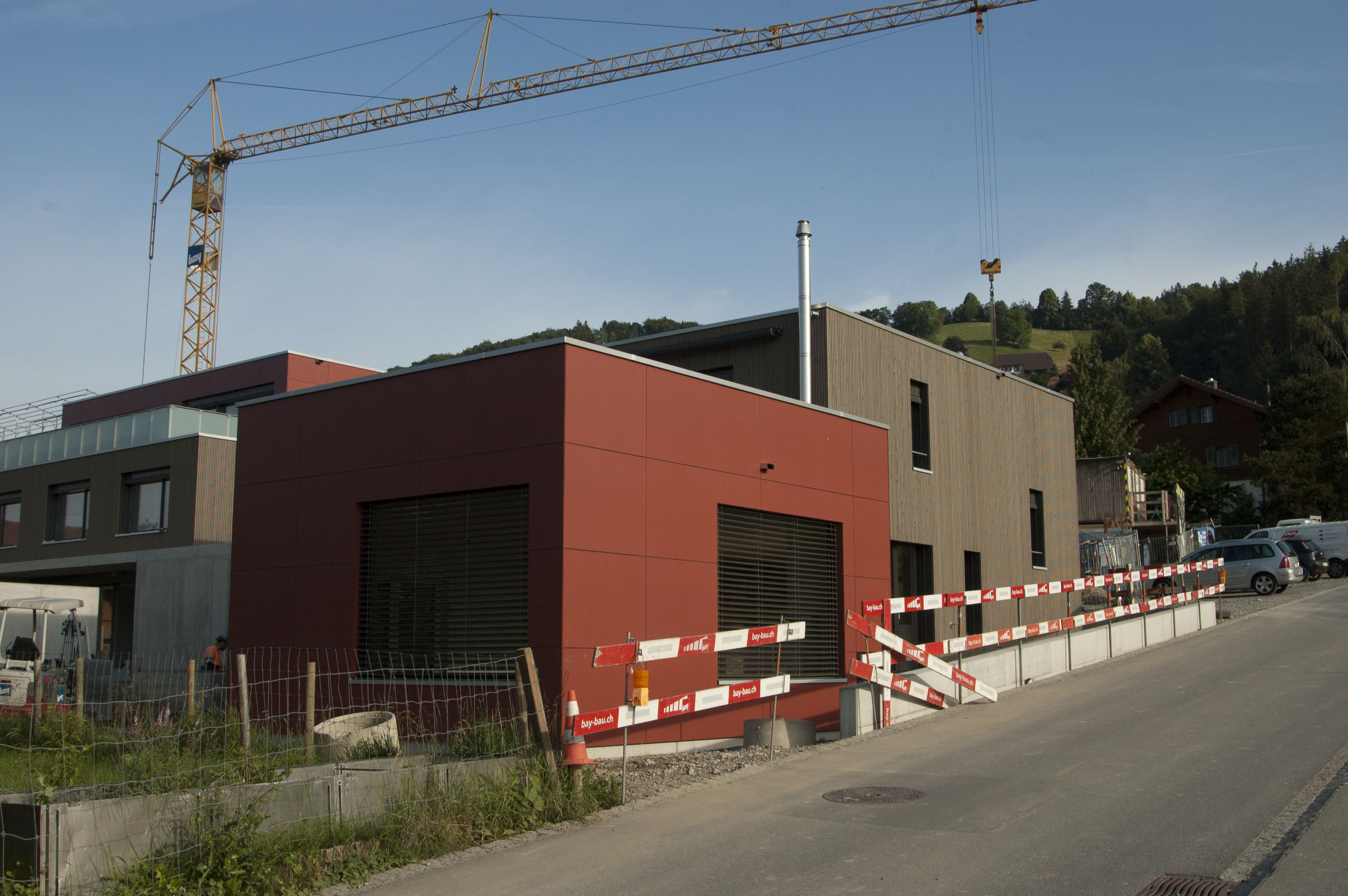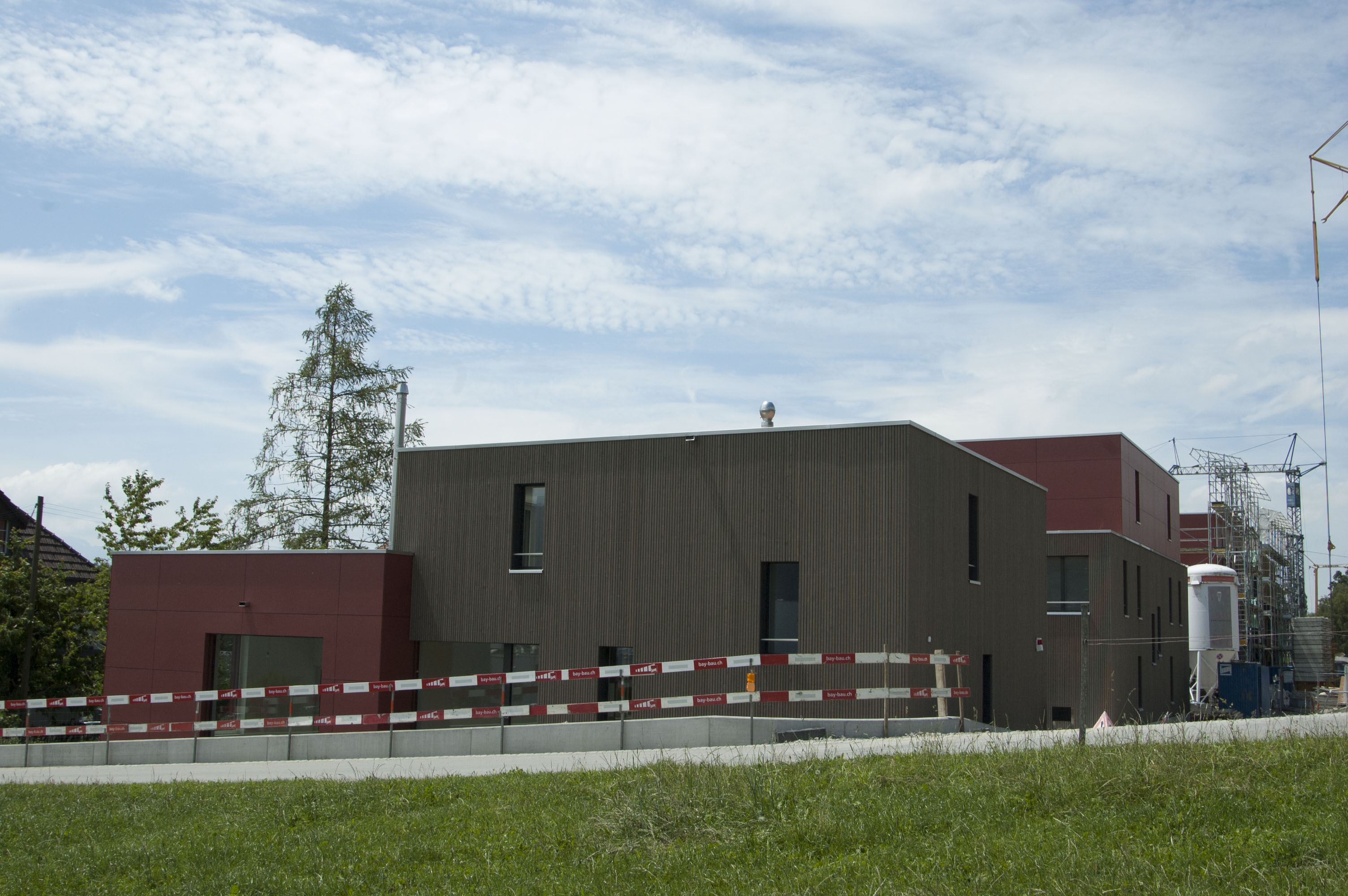 Baustelle Tonispark Konolfingen Stand Juni 2018 Die Baustelle schreitet voran: Das erste Einfamilienhaus ist fertig und bereits bezogen: